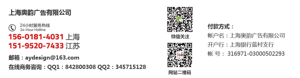 奥韵广告10多年来先后为江苏、浙江、广东、上海、广州、山东、安徽、辽宁、河北、江西、广西、湖南、山西、陕西、宁夏、云南、湖南、四川、贵州、河南等省市地区提供集团logo设计商标标志设计,企业vi形象包装设计,宣传画册设计,网页开发及品牌营销策划服务。长期致力于探索策略与设计之道,以策略为先导,提供从策划设计到制作落地的综合性服务。专注品牌策划,释放品牌影响力!先后服务过的行业涉及机械制造,物流仓储,新能源新材料,电力电气,生物医药,工业设备,教育咨询,IT科技,环保绿化,照明灯具,金融投资,家居建材,酒店餐饮,房地产,汽车,模具五金,工程建筑,水处理,大气污染治理等诸多领域。 |