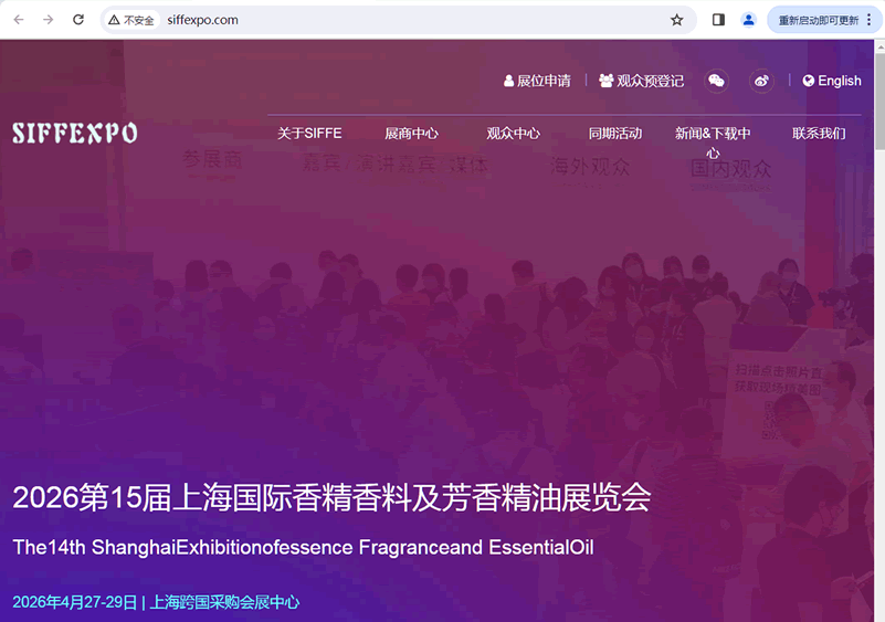 “SIFF EXPO”将于2026年4月27-29日在上海跨国采购会展中心举行,2026第十五届上海国际香精香料及芳香精油展览会(简称SIFF EXPO)将以“创造客户价值与促进产业发展”为主题,届时将为日化、制药、 精油、纯露、化妆品、美容护肤、个人护理、芳香芳疗、洗涤、亚健康服务机构等众多应用领域提供“一站式”采购及解决方案!