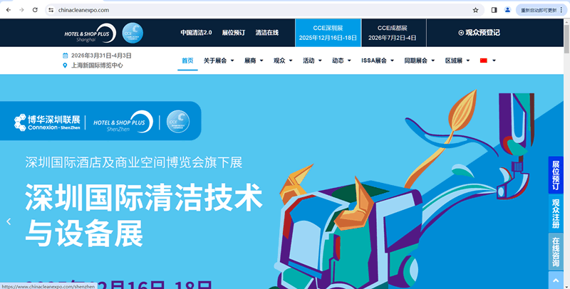 Hotel & Shop Plus 上海国际酒店及商业空间博览会系列展——第27届上海国际清洁技术设备博览会将于2026年3月31日-4月3日在上海新国际博览中心举办。