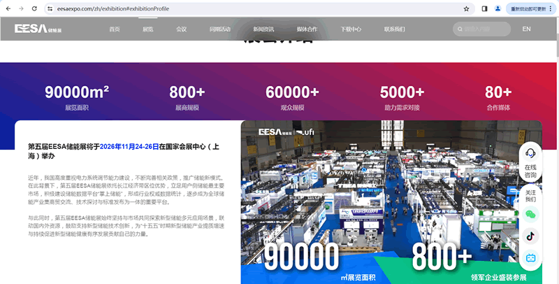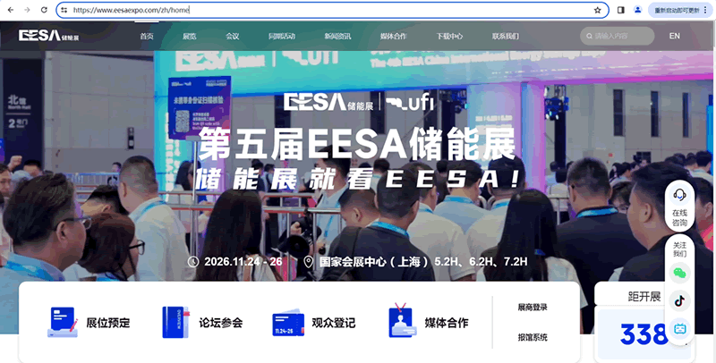 第五届EESA储能展将于2026年11月24-26日在国家会展中心(上海)举办