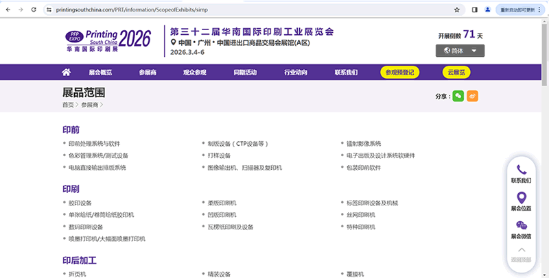 信息转载地址:https://www.printingsouthchina.com/PRT/idx/simp https://www.printingsouthchina.com/PRT/information/ScopeofExhibits/simp