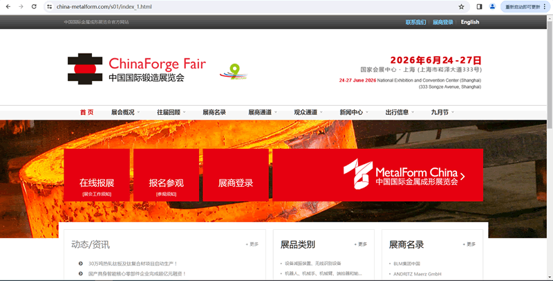 中国国际锻造展览会ChinaForge Fire于2026年6月24-27日上海国家会展中心举行,奥韵广告Since2007提供中国国际锻造展览会展台设计,锻造展展台搭建,锻造装备与技术展展位设计,零部件展展位搭建,冲压装备与技术展展会设计,钣金制作装备与技术展展会搭建,模具与工装展展台设计,连接与焊接展展台搭建服务.