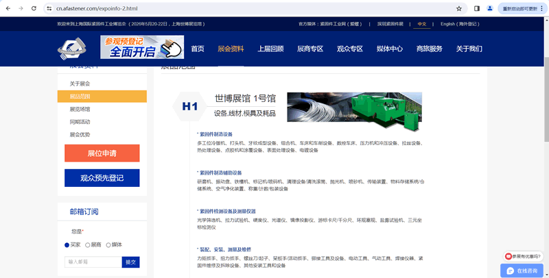 螺栓、螺钉、螺母、膨胀螺丝、铆接产品、牙条/丝杆、垫圈和冲压件、钉、销与键、组合紧固件、连接副紧固件、冷镦非标件、热墩及车削产品、不锈钢紧固件、塑料及尼龙紧固件、耐腐蚀金属紧固件、特殊螺钉、非标紧固件、螺塞及堵头、螺纹护套/螺纹修复、精密车床五金件、创新型紧固件及发明、紧固件媒体、电商等