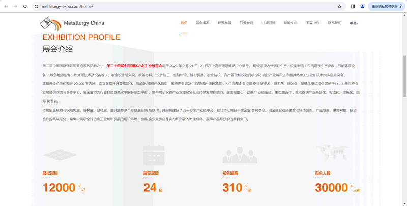 信息转载地址:https://www.metallurgy-expo.com/home/ https://www.metallurgy-expo.com/home/exhibitionOverview