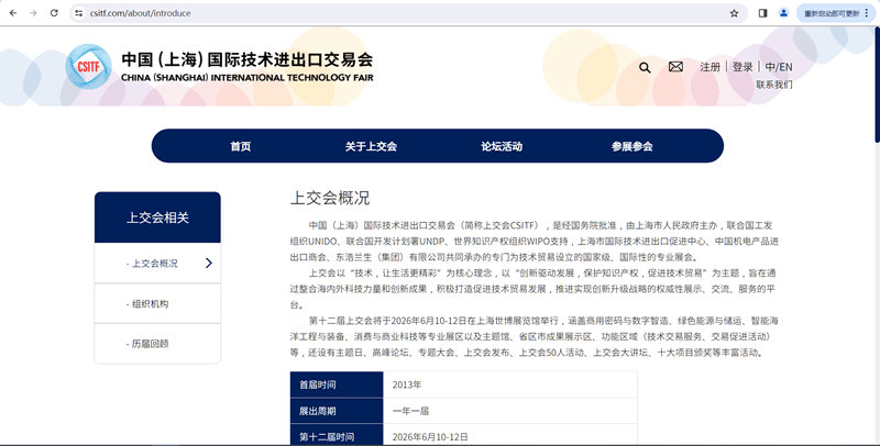 中国上海国际技术进出口交易会 2026第十二届上交会CSITF 技术贸易展