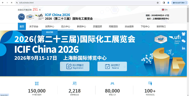 第二十三届国际化工展览会ICIF China 2026年09月15-17日上海新国际博览中心举行,上海奥韵SINCE2007提供能源与石油化工展展台设计,基础化学品展展台搭建,化工新材料展展会设计,精细化工展展会搭建,化工安全与环保展展位设计,化学品包装与储运展展位搭建,化工工程与装备展展台设计,化学试剂与实验室设备展展位搭建服务.