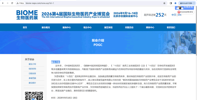 BIOME2026第4届国际生物医药产业博览会将于2026年9.16-18在北京亦创国际会展中心隆重举办,上海奥韵SINCE2007提供BIOME2026展台设计,生物医药产业博览会展台搭建,生物医药展展位设计,生物制药展展位搭建,生物技术展展台搭建,生物工程展展会搭建,合成生物展展台搭建,细胞生物展展位设计,天然提取物展展位搭建,医药原料展展台设计搭建服务.