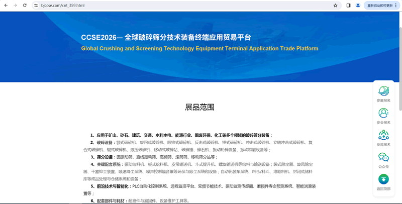 全球破碎筛分技术装备终端应用贸易平台—CCSE2026