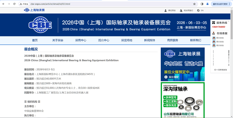 中国设备管理协会主办的“2026中国(上海)国际轴承及轴承装备展览会(简称CBE)”将于2026年6月3-5日在“上海新国际博览中心”举办。预计展出面积40000平方米,将汇聚来自世界各地的近600家企业与5.5万多人次的国内外观众齐聚一堂。30个国家和地区的采购商将活跃在展览馆进行贸易洽谈;为期三天的展览会是开展商务交流、谈判的最佳平台。