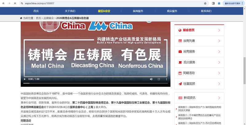 秉承行业引领、创新发展、服务行业的宗旨,第二十四届中国国际铸造博览会、第十九届中国国际压铸工业展览会、第十九届国际有色及特种铸造展览会将于2026年5月6-9日在国家会展中心(上海)盛大举办。