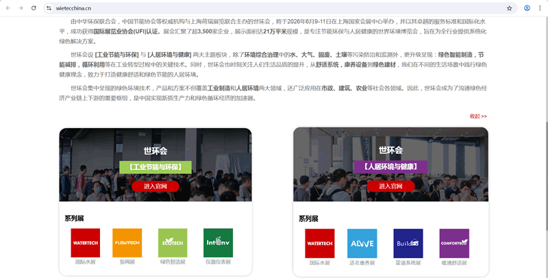 世界环境博览会简称世环会(wietec)2026年6月9-11日在上海国家会展中心举办,上海奥韵Since2007持续聚焦世环会展台设计,环保展展台搭建,国际水展展会设计,泵阀展展会搭建,绿色智造展展位设计,仪器仪表展展位搭建,适老康养展展位装修,管道系统展展台装修,暖通舒适展展会装修,wietec展展台搭建.