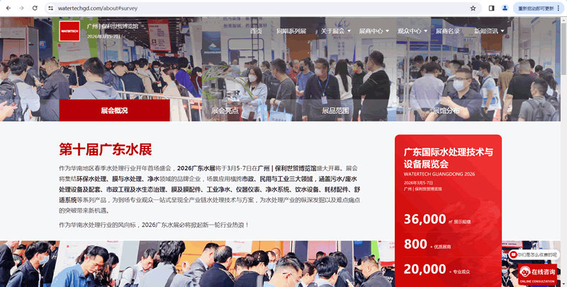 作为华南地区春季水处理行业开年首场盛会,2026广东水展将于3月5-7日在广州 | 保利世贸博览馆盛大开幕。展会将集结环保水处理、膜与水处理、净水领域的品牌企业,场景应用横跨市政、民用与工业三大领域,涵盖污水/废水处理设备及配套、市政工程及水生态治理、膜及膜配件、工业净水、仪器仪表、净水系统、饮水设备、耗材配件、舒适系统等系列产品,为到场专业观众一站式呈现全产业链水处理技术与方案,为水处理产业的纵深发掘以及难点痛点的突破带来新机遇。