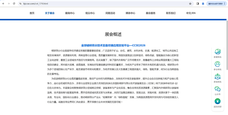 全球破碎筛分技术装备终端应用贸易平台—CCSE2026