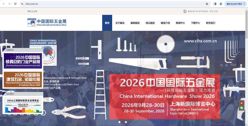 2026中国国际五金展(CIHS)将于2026年9月28日-30日在上海新国际博览中心举办。2026中国国际五金展将继续坚持市场导向和技术导向的展会定位,坚持内外市场兼顾,两条腿走路的办展导向,稳定规模,提高质量,加强服务,争取为参展商、采购商创造更大价值。