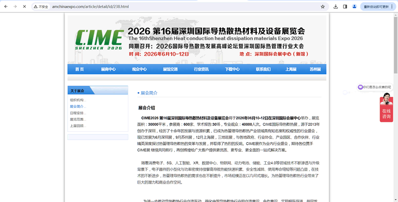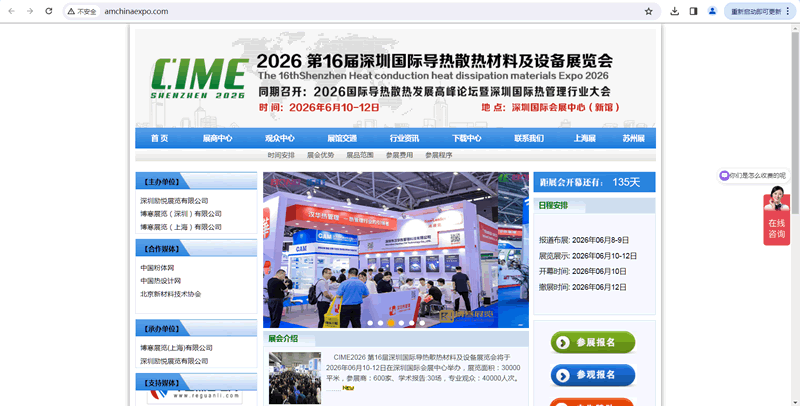 CIME2026 第16届深圳国际导热散热材料及设备展览会将于2026年06月10-12日在深圳国际会展中心举办,展览面积:30000平米,参展商:600家、学术报告:30场,专业观众:40000人次。CIME国际导热散热展,源于2013年创办于深圳,经历了十余年的发展与资源积累,已成为热管理导热散热产业领域具有知名度和权威性的行业盛会,现已发展为6月深圳展,9月苏州展,12月上海展,三地巡展,与各地政府、行业协会、产业园区、合作伙伴、行业精英深度探讨热管理导热散热的变革与发展,并取得了热烈的反响。CIME展作为业内行业盛会,期待各位携手CIME展 继续共同前行,再创辉煌给广大客户提供更优质、更专业、更全面的一站式解决方案。