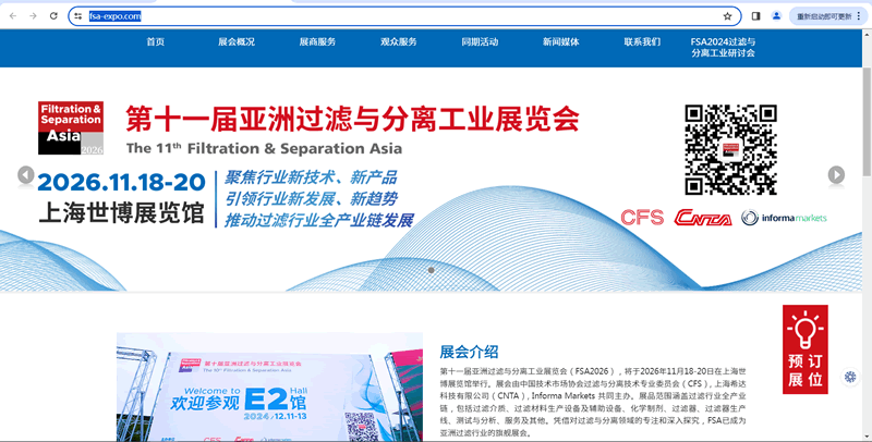 第十一届亚洲过滤与分离工业展览会FSA2026.11.18-20在上海世博展览馆举行,上海奥韵Since2007持续聚焦过滤展展台设计,过滤展会展台搭建,上海过滤展展会设计,2026过滤展展会搭建,过滤与分离工业展览会展位装修,过滤展览会展位布展,分离展览会展台搭建,过滤展展会策划,过滤展会展位设计.