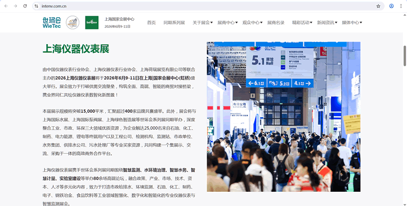 上海国际环境监测与过程控制展览会将于2026年6月9-11日在上海国家会展中心虹桥举办,上海奥韵Since2007持续聚焦上海仪器仪表展展台设计搭建,环境监测展展会设计搭建,环境监测与过程控制展展位设计装修布展服务.